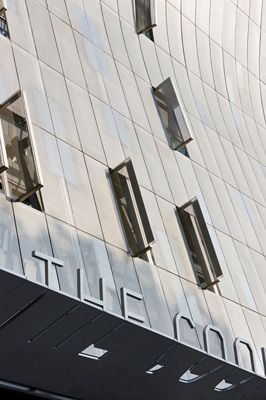 The New, $111.6 million academic building at New York City’s Cooper Union for the Advancement of Science and Art is the type of extroverted structure one would expect from architect Thom Mayne, FAIA, of the Santa Monica—based firm Morphosis. It has a sharp and folded perforated-stainless-steel shell with an aggressive gash in its main facade. Performance is part of the rationale behind the dynamic sheath, which cloaks a poured-in-place concrete building with a standard window-wall system, helping mitigate heat gain in summer and retain heat in winter. The outer skin is one of several tightly coordinated sustainable features that are likely to earn the project, designed with local associate architect Gruzen Samton, a Platinum certification under the U.S. Green Building Council’s LEED rating system.