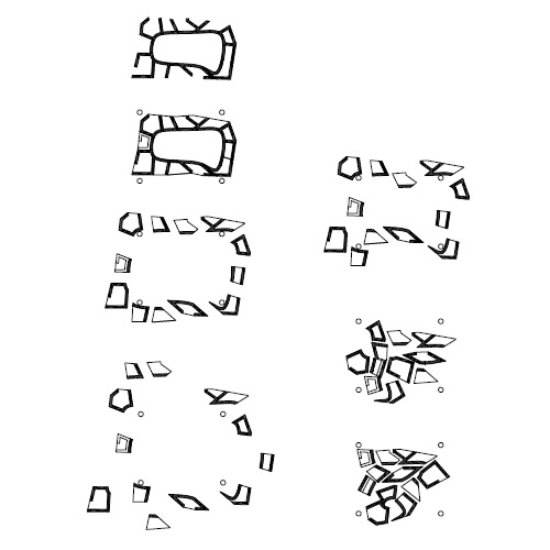 The project’s starting point is an arena that in a certain way conditions the event, but that can also be broken and re-pictured at the directors', the choreographers’, and even the visitors’ discretion. When it defines the arena in plan, the cars seem primeval and anthropomorphic, in spite of this illustration being in the abstraction of a drawing and not in the real, “phenomenological” space. And when shuffled, the irrational arrangements remit to the embodied Other; to a figurative, anthropomorphic form (the plan) that was undone and redone as in a mixed and reversible architecture.